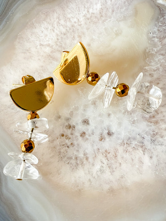 Boucles d'oreilles Pierre de Soleil et Cristal de Bohème