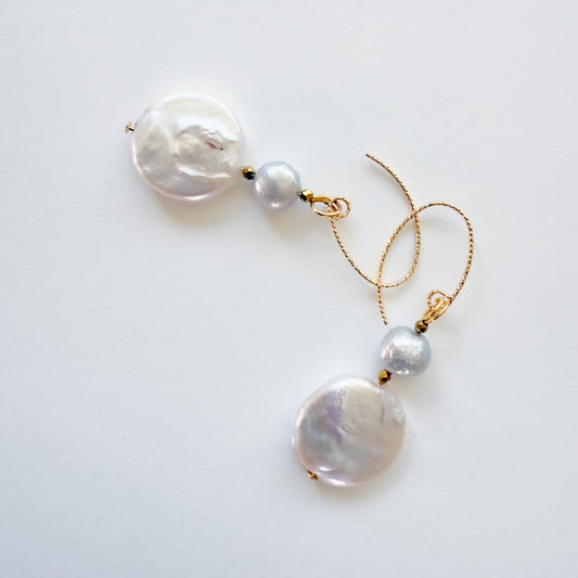 Boucles d'oreilles Perle d'eau douce irrégulière et Pierre de soleil