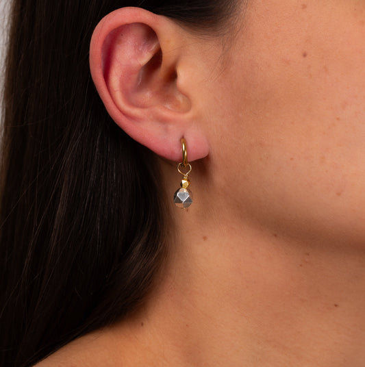 Boucles d'oreilles Anneau plaqué or - Hématite argentée et ciselée