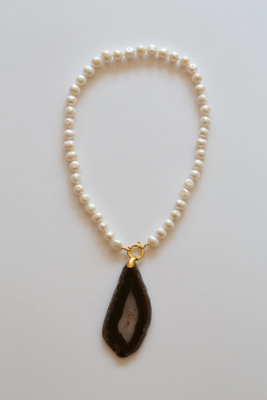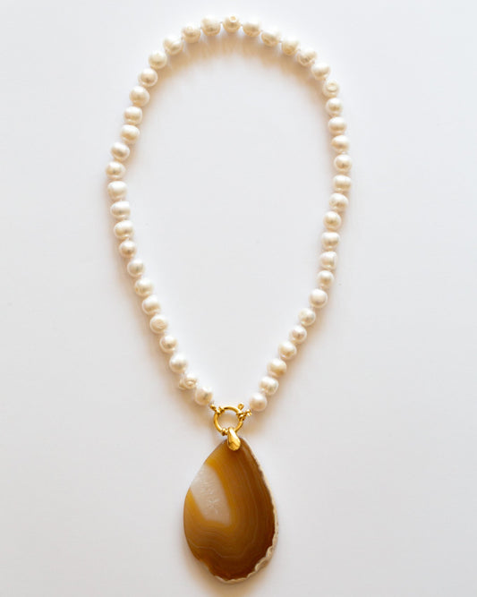 Collier Perles d'eau douce blanche et Agate brune