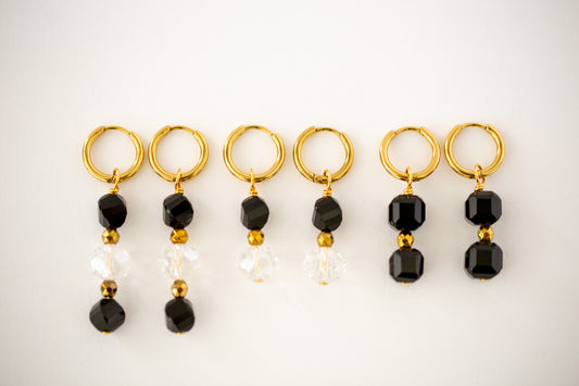 Boucles d'oreilles Onyx et Perle de Cristal de bohème
