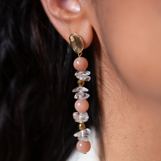 BOUCLES D'OREILLES PENDANTES - QUARTZ ROSE