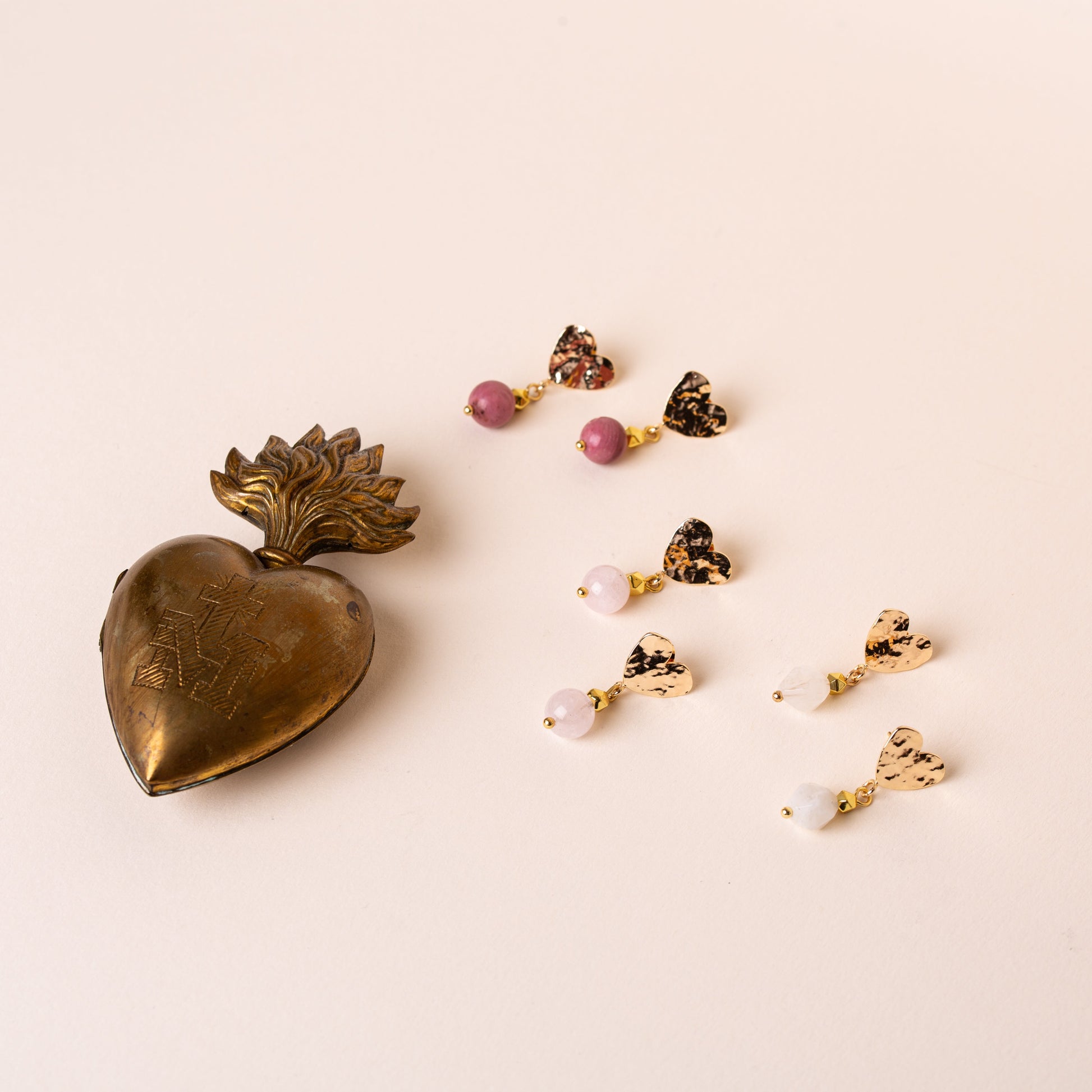 Boucles d'oreilles attache martélée en forme de coeur - Pierre de Lune