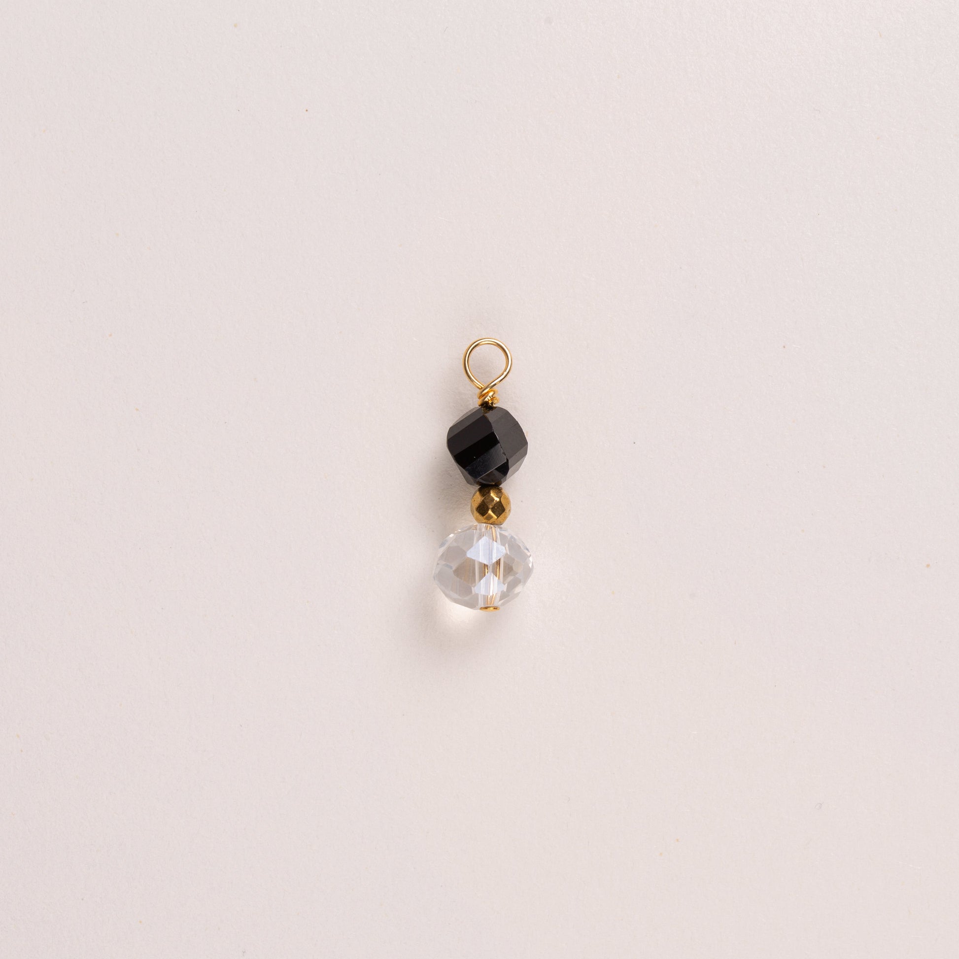 Charms deux pierre ronde ciselée - Onyx & Cristal de bohème