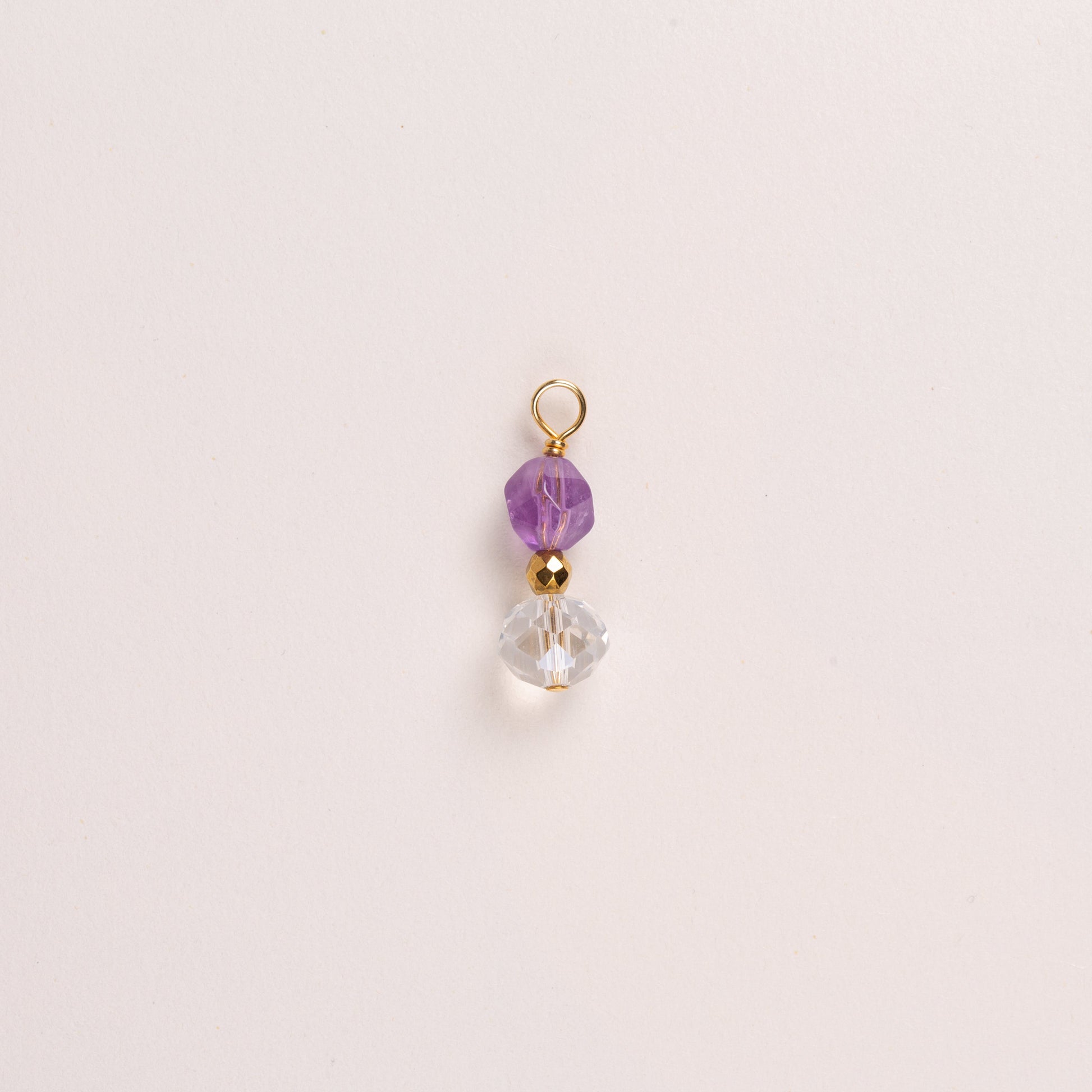 Charms deux pierre ronde ciselée - Améthyste & Cristal de bohème