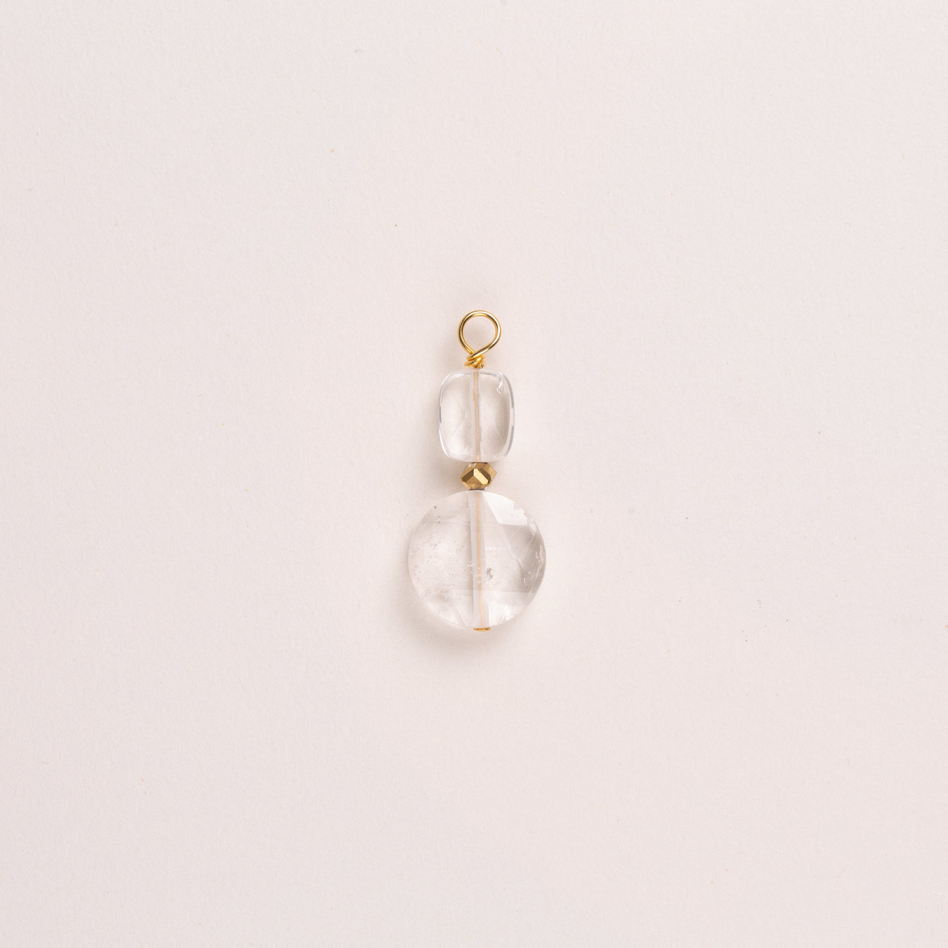 Charms pierre ronde ciselée et pierre rectangulaire - Cristal de Roche