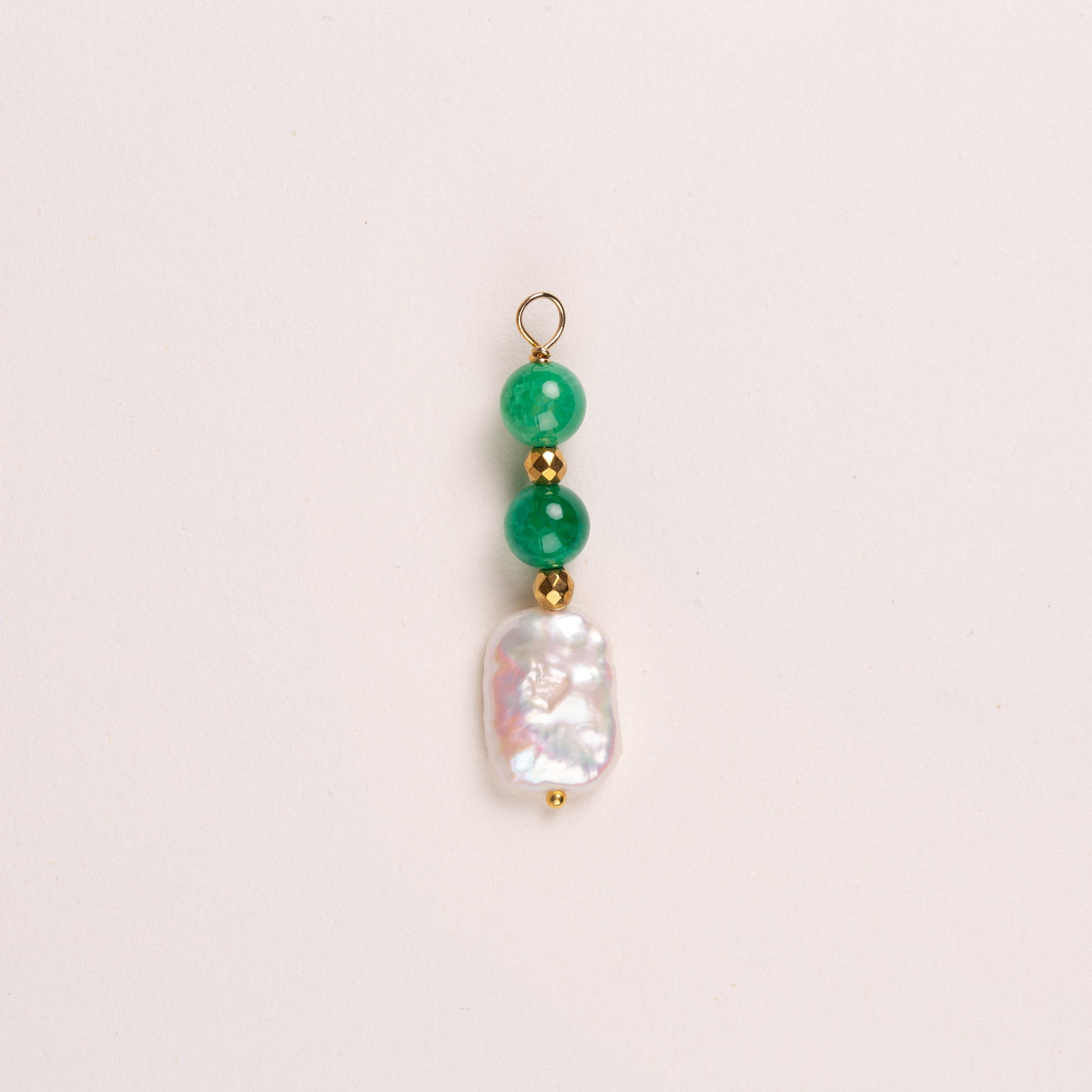 Charms perle de culture ovale & deux pierres ronde - Agate verte
