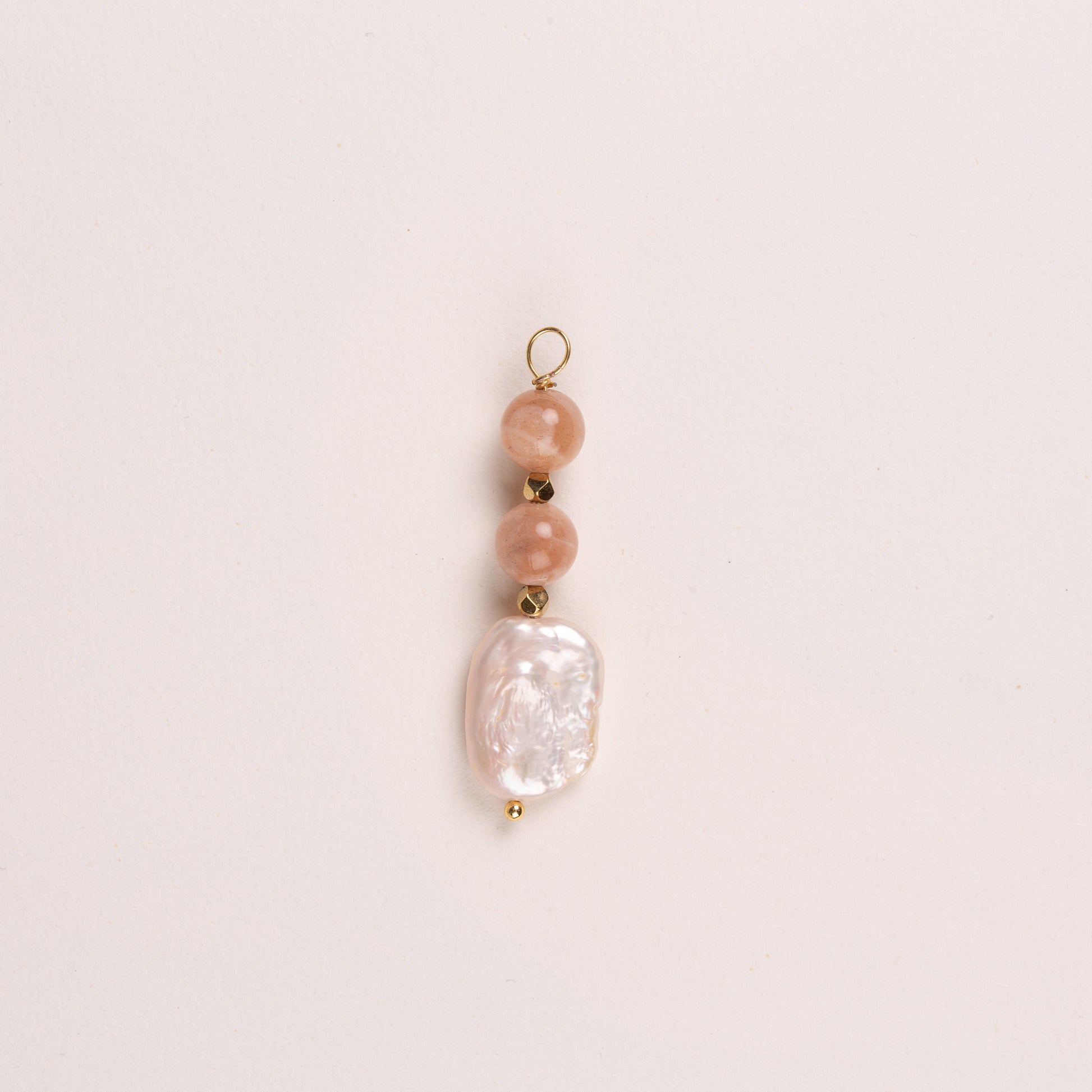 Charms perle de culture ovale & deux pierres ronde - Pierre de Soleil