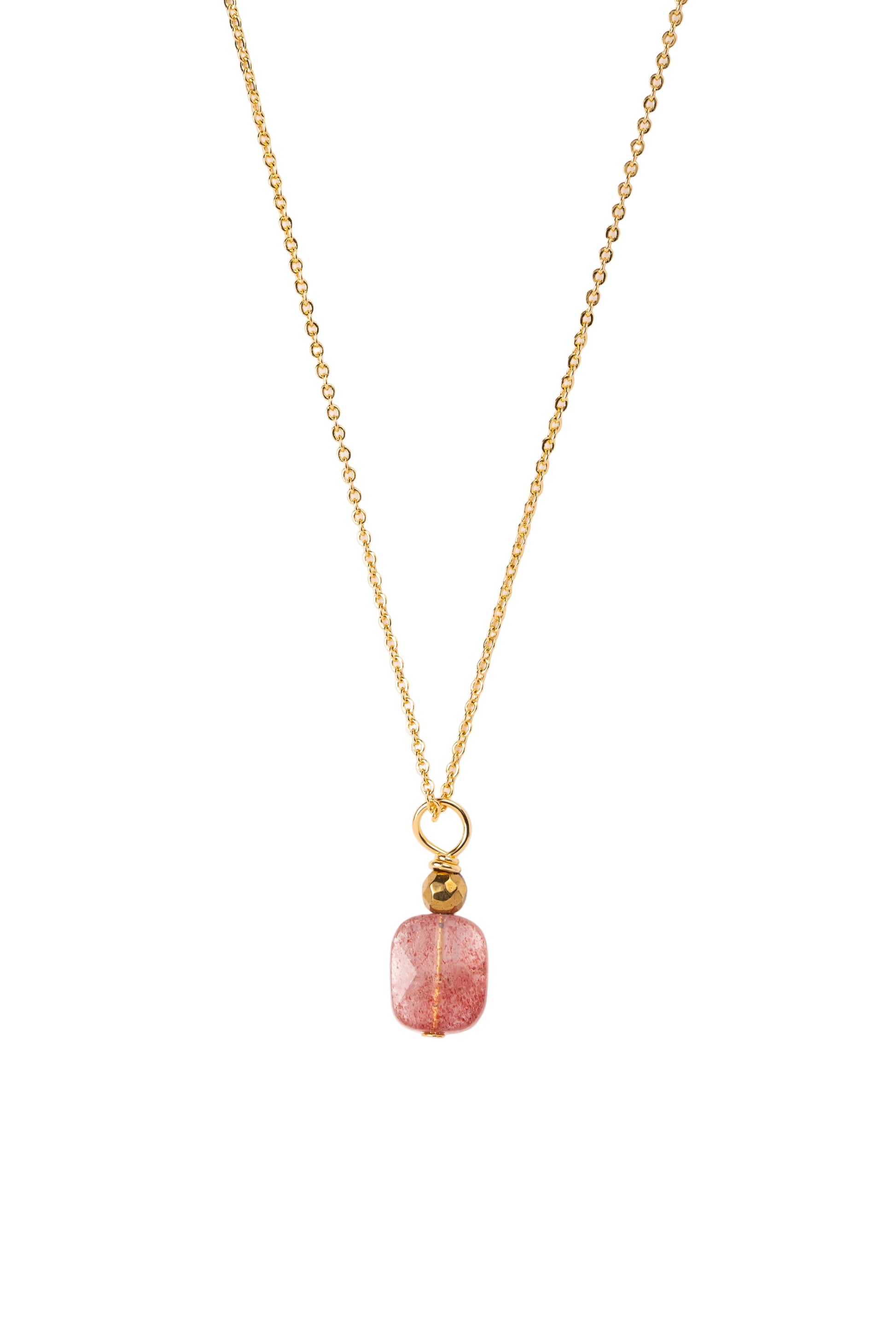 Collier délicat en chaîne fine plaqué or fin, orné d'une véritable pierre de quartz fraise naturelle. Cette gemme aux teintes rose poudré apporte une touche de douceur et d'élégance à votre silhouette. Le plaquage or fin garantit une brillance durable et un port confortable au quotidien. Un accessoire intemporel qui sublime tout style, du plus épuré au plus raffiné.