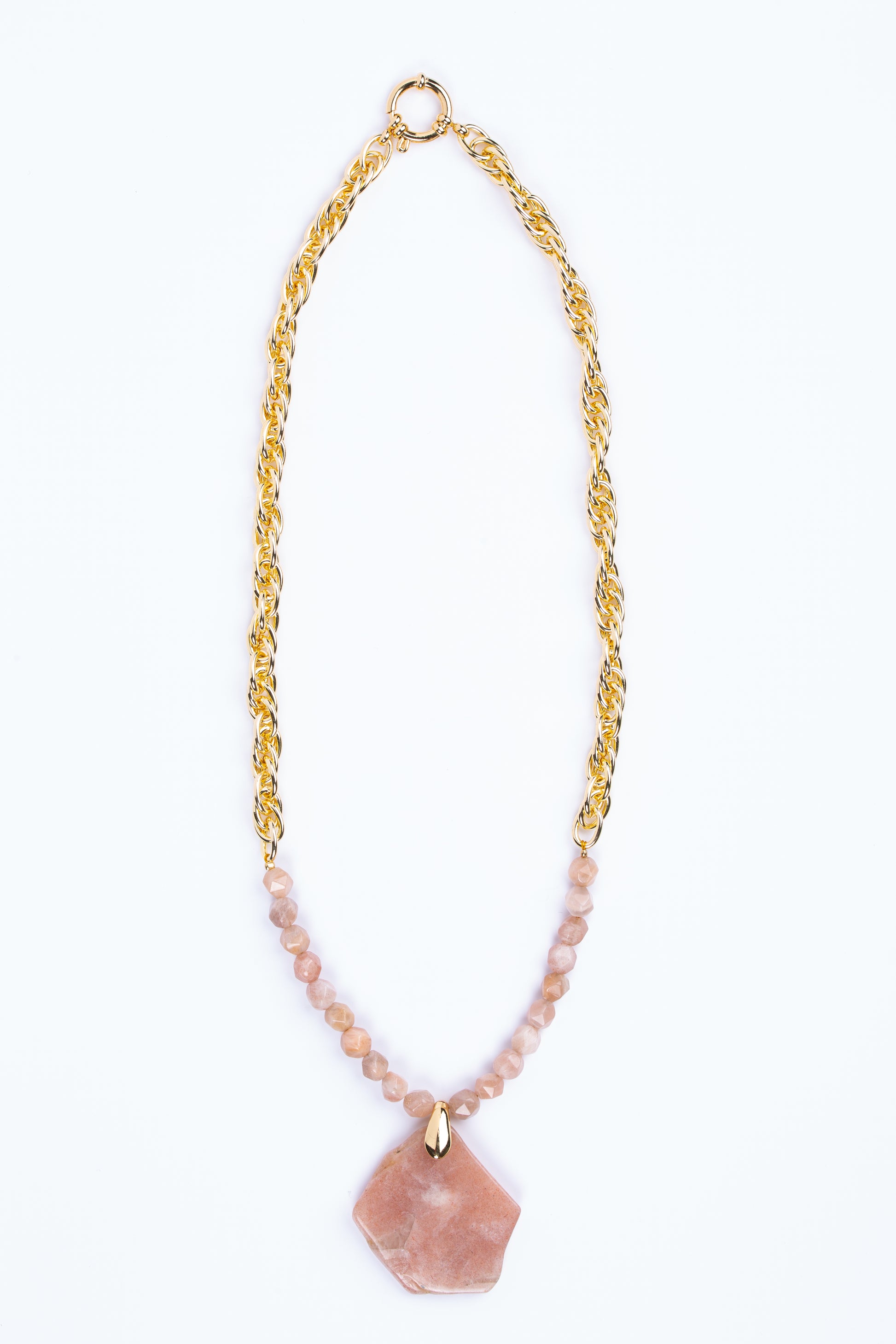 Collier en pierre de soleil – Chaîne plaquée or fin